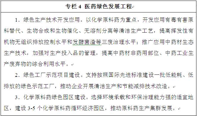 建設綠色工廠和綠色園區(qū)。以廠房集約化、生產(chǎn)潔凈化、廢物資源化、能源低碳化為目標,打造一批低排放綠色工廠。積極試點醫(yī)藥工業(yè)園區(qū)清潔生產(chǎn),建設高標準園區(qū),實現(xiàn)上下游配套、公用系統(tǒng)共享、資源綜合利用和污染物集中治理,在控制揮發(fā)性有機物(VOCs)排放和治理廢水等方面持續(xù)穩(wěn)定達到國家、地方標準或控制要求。